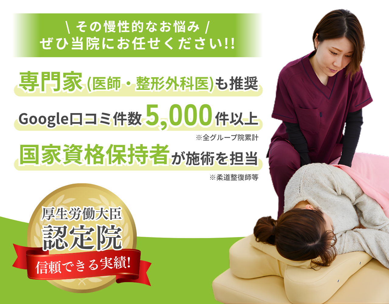 健康保険を利用して通院している方も多く、効果を高めるために自費治療を受けられたとしても、1回で5000円や6000円といった高額な治療費にはなりません。治療効果を出していくために継続通院が必要な場合も、多くの方が継続してご通院いただいております。少しでも気になられていましたらお気軽にご相談ください。